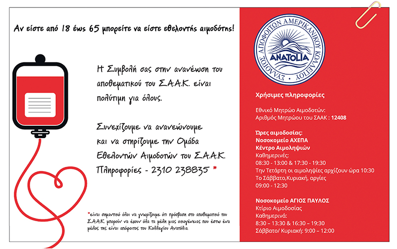 ΣΤΗΡΙΞΤΕ ΤΗΝ ΟΜΑΔΑ ΕΘΕΛΟΝΤΩΝ ΑΙΜΟΔΟΤΩΝ ΤΟΥ Σ.Α.Α.Κ. ΑΝΑΤΟΛΙΑ