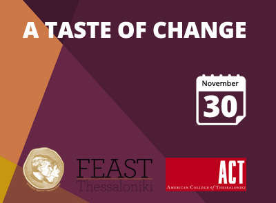 To FEAST Thessaloniki και το Michael and Kitty Dukakis Center for Public and Humanitarian Service του ACT (American College of Thessaloniki) συνδιοργανώνουν την εκδήλωση “A Taste of Change” με θέμα την επίλυση των νέων κοινωνικών προκλήσεων μέσω καινοτόμων εργαλείων και εγχειρημάτων.