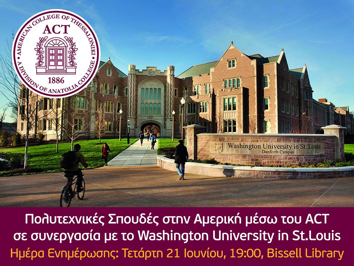 ΠΟΛΥΤΕΧΝΙΚΕΣ ΣΠΟΥΔΕΣ ΣΤΗΝ ΑΜΕΡΙΚΗ ΜΕΣΩ ΤΟΥ ACT ΣΕ ΣΥΝΕΡΓΑΣΙΑ ΜΕ ΤΟ WASHINGTON UNIVERSITY IN ST. LOUIS