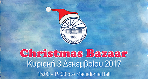 O Σ.Α.Α.Κ. Ανατόλια συμμετέχει στο Christmas Bazaar at Anatolia College 2017. Περιμένουμε τους αποφοίτους και τους φίλους του Κολλεγίου Ανατόλια στο Macedonia Hall – αίθουσα 221.