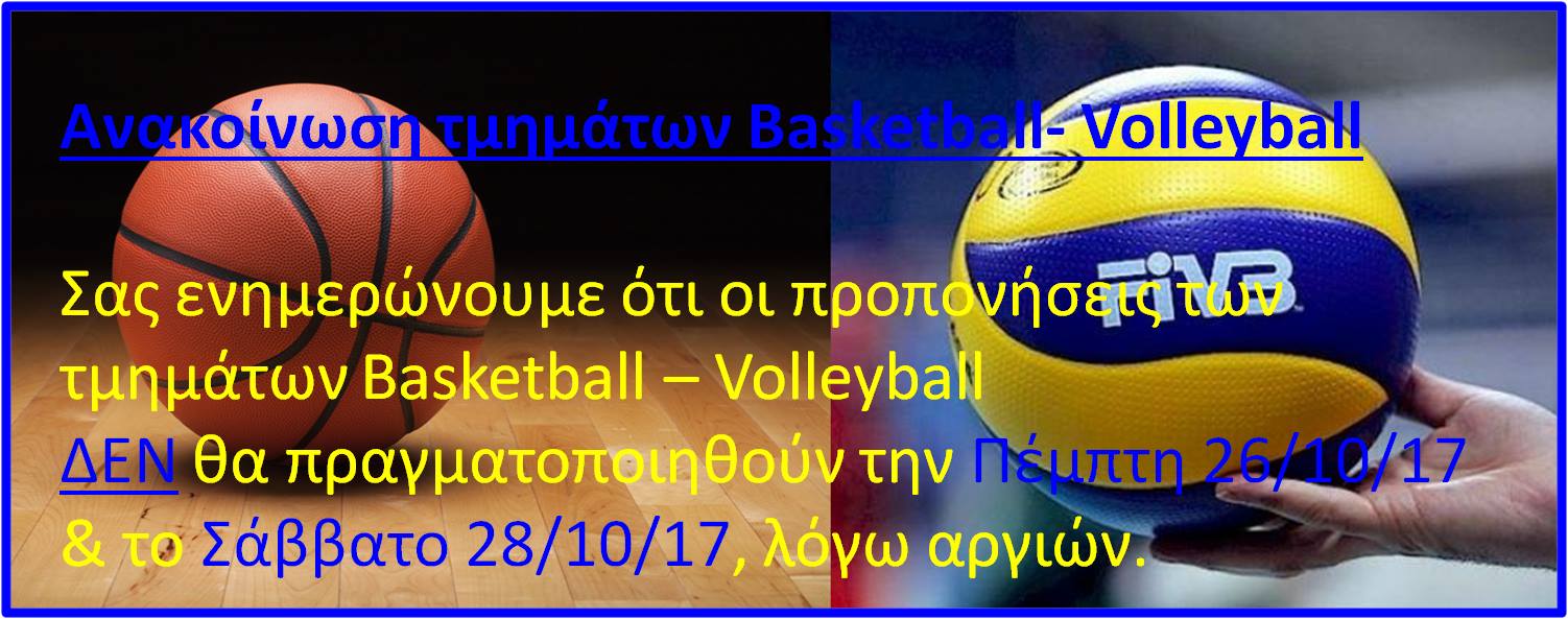 ΑΝΑΚΟΙΝΩΣΗ ΤΜΗΜΑΤΩΝ VOLLEYBALL – BASKETBALL