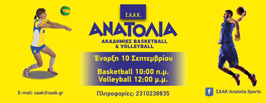 Οι Ακαδημίες Basketball και Volleyball του Σ.Α.Α.Κ. Ανατόλια ξεκινούν τη λειτουργία τους για ακόμα μια χρονιά.