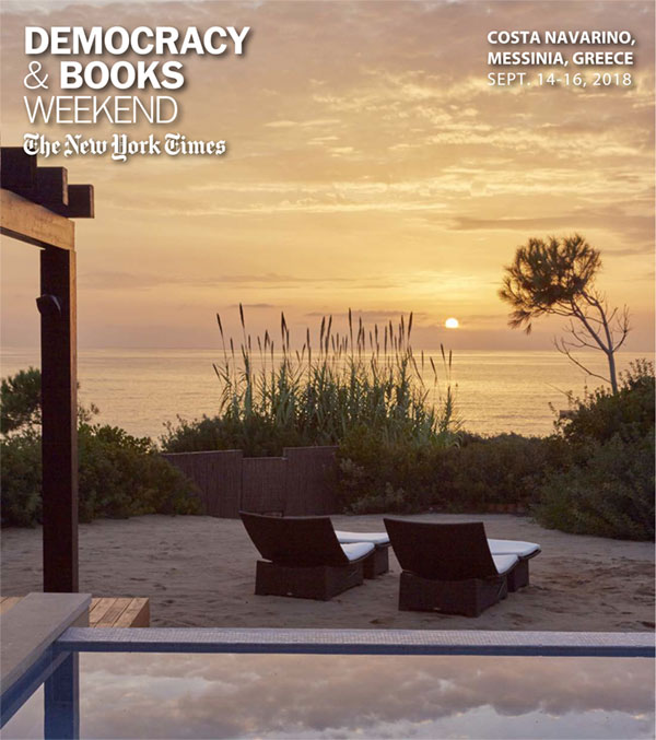 Το New York Times «Athens Democracy Forum» και η Costa Navarino διοργανώνουν στις 14-16 Σεπτεμβρίου, το «Democracy and Books Weekend». Στη φετινή διοργάνωση συμμετέχουν επιφανείς ομιλητές, οι οποίοι θα συζητήσουν για τη μακρόχρονη σύνδεση της δημοκρατίας με τα βιβλία. Την κεντρική συζήτηση πλαισιώνει ένα πλούσιο πρόγραμμα πολιτιστικών δραστηριοτήτων.