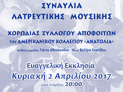 ΣΥΝΑΥΛΙΑ ΛΑΤΡΕΥΤΙΚΗΣ ΜΟΥΣΙΚΗΣ ΧΟΡΩΔΙΑΣ Σ.Α.Α.Κ. ΑΝΑΤΟΛΙΑ