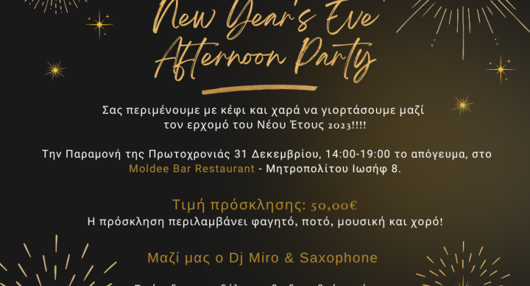 Σας περιμένουμε με κέφι και χαρά να γιορτάσουμε μαζί τον ερχομό του Νέου Έτους 2023!!!! Την Παραμονή της Πρωτοχρονιάς 31 Δεκεμβρίου, 14:00-19:00 το απόγευμα, στο Moldee Bar Restaurant, Μητροπολίτου Iωσήφ 8 Τιμή πρόσκλησης: 50,00€ Η πρόσκληση περιλαμβάνει φαγητό, ποτό, μουσική και χορό!Μαζί μας ο Dj Miro & Saxophone Τα έσοδα της εκδήλωσης θα διατεθούν υπέρ του ταμείου υποτροφιών του […]