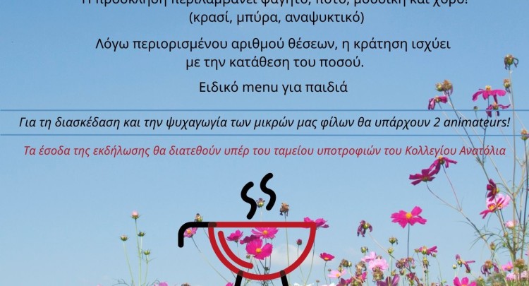 Σας περιμένουμε στο SPRING BBQ την Κυριακή 22 Μαΐου, 19:00,στο Stavros Constantinidis Hall Patio στο ACT. https://goo.gl/maps/Bs3y5pKKtDt1CvzS6 Η πρόσκληση περιλαμβάνει φαγητό, ποτό, μουσική και χορό!Για τους μικρούς μας φίλους θα υπάρχουν και 2 animateurs! Τα έσοδα της εκδήλωσης θα διατεθούν υπέρ του ταμείου υποτροφιών του Κολλεγίου Ανατόλια. Δηλώστε τη συμμετοχή σας ηλεκτρονικά εδω Δηλώσεις συμμετοχής μέχρι 19/05/2022. Λόγω περιορισμένου αριθμού θέσεων, η κράτηση ισχύει με την κατάθεση του […]