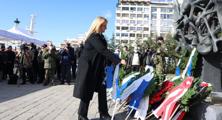 Κατάθεση στεφάνου της Προέδρου του Σ.Α.Α.Κ. Ανατόλια κας Μαρίας Χατζηδημητρίου, στο πλαίσιο της Εθνικής Ημέρας Μνήμης των Ελλήνων Εβραίων Μαρτύρων και Ηρώων του Ολοκαυτώματος.