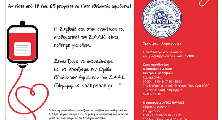 [vc_row][vc_column][vc_column_text]Αγαπητά μας μέλη, αγαπητοί μας συναπόφοιτοι, Σας ευχόμαστε μια Χαρούμενη & Δημιουργική Νέα Χρονιά! Ο Σ.Α.Α.Κ., με ιστορία 83 χρόνων, είναι η συνέχεια και η αφετηρία ταυτόχρονα για χιλιάδες αποφοίτους του Κολλεγίου Anatolia. Αποτελεί έναν δραστήριο και δημιουργικό συνδετικό ιστό ανάμεσα στους απόφοιτους, τόσο μεταξύ τους όσο και με το Σχολείο μας, διατηρώντας ακμαίες τις […]