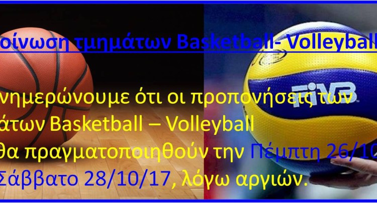 ΑΝΑΚΟΙΝΩΣΗ ΤΜΗΜΑΤΩΝ VOLLEYBALL – BASKETBALL