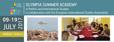 Η Θερινή Ακαδημία Ολυμπίας (Olympia Summer Academy), που συνδιοργανώνεται με την Ευρωπαϊκή Εταιρία Διεθνών Σπουδών (EISA), αποτελεί έναν ετήσιο και διεθνώς καθιερωμένο θεσμό εκπαιδευτικής αριστείας, ερευνητικής διαδικτύωσης και επαγγελματικής κοινωνικοποίησης στα πεδία της ανάλυσης συγκρούσεων, τρομοκρατίας, εθνικισμού, διεθνών σχέσεων, ανάλυσης πολιτικού ρίσκου κλπ. Η καταληκτική ημερομηνία αιτήσεων για το πρόγραμμα του 2017 είναι η 3η Μαΐου.