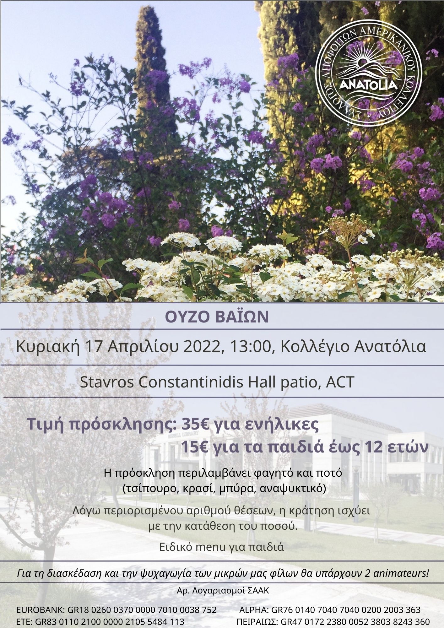 Σας περιμένουμε στο καθιερωμένο Ούζο των Βαΐων την Κυριακή 17 Απρίλιου, 13:00, στον προαύλειο χώρο του campus ACT. https://goo.gl/maps/Bs3y5pKKtDt1CvzS6