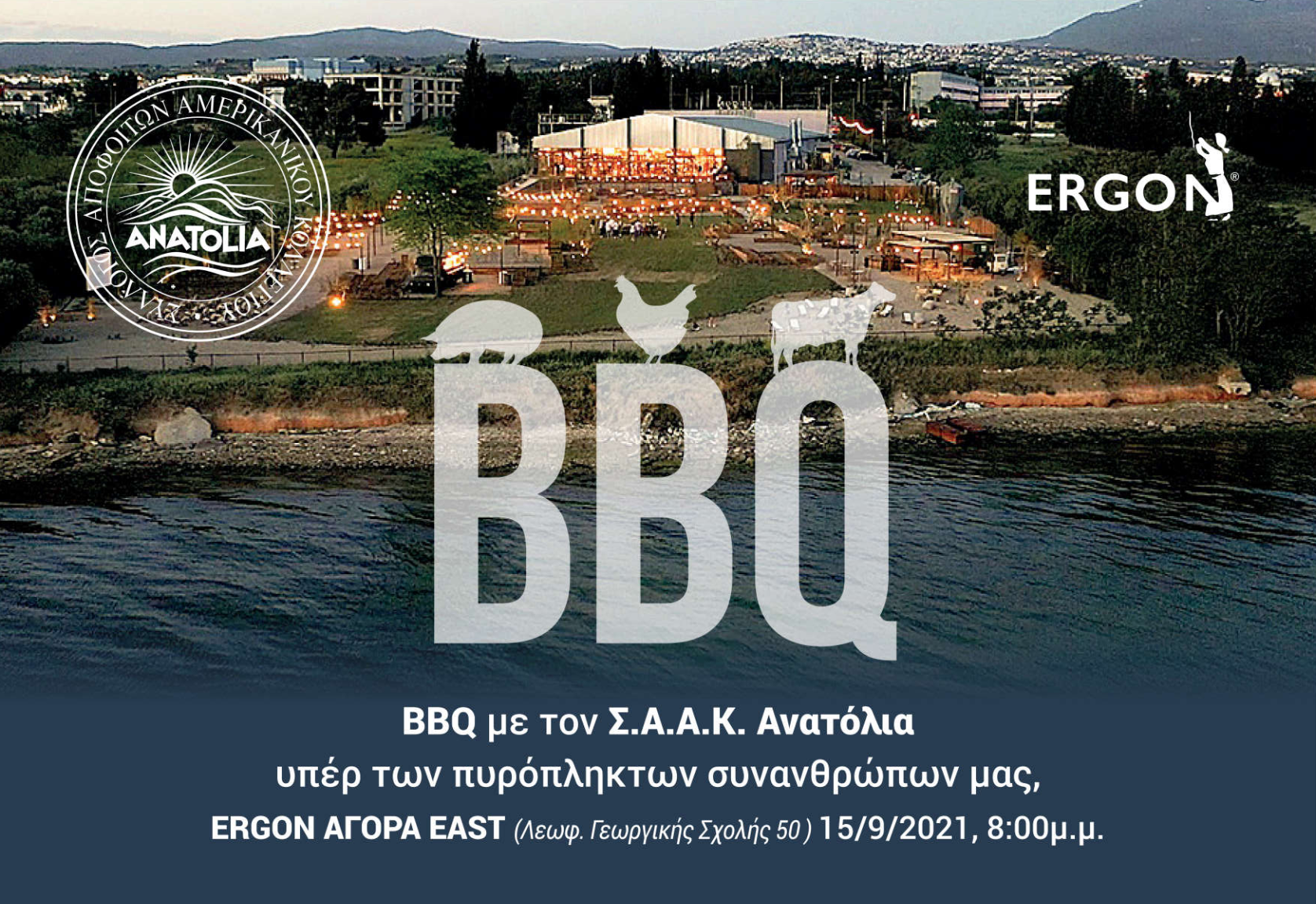 Ο Σ.Α.Α.Κ. Ανατόλια, με αίσθημα κοινωνικής ευθύνης, σας προσκαλεί την Τετάρτη 15 Σεπτεμβρίου 2021, στις 8μμ, σε μια βραδιά Barbeque στο Ergon Agora East με σκοπό την προσφορά στους πυρόπληκτους συνανθρώπους μας που βιώνουν δύσκολες στιγμές στις πρόσφατα πληγείσες περιοχές της Ελλάδας.