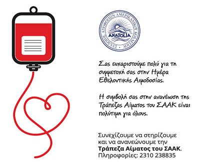 ΕΥΧΑΡΙΣΤΟΥΜΕ ΓΙΑ ΤΗΝ ΣΥΜΜΕΤΟΧΗ ΣΑΣ ΣΤΗΝ ΗΜΕΡΑ ΕΘΕΛΟΝΤΙΚΗΣ ΑΙΜΟΔΟΣΙΑΣ