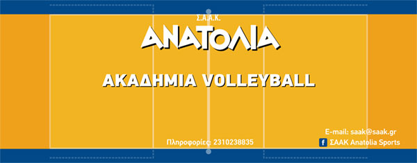 Η Ακαδημία Volleyball του Σ.Α.Α.Κ. Ανατόλια ξεκίνησε τη λειτουργία της! Για πληροφορίες και εγγραφές, επικοινωνήστε με το γραφείο του Συλλόγου: tel. 2310 238835.