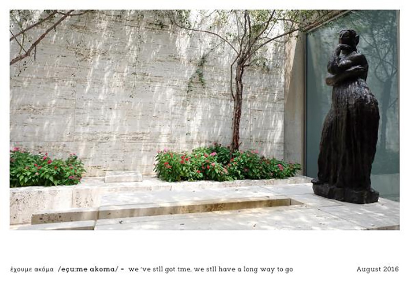 Το “Έχουμε Ακόμα” είναι πρώτα απ’όλα μια ιδέα συνδεδεμένη με τη συνεχή αναζήτηση καινούριων εικόνων, την ανάγκη γνωριμίας με διαφορετικούς ανθρώπους και κουλτούρες , τη διάσχιση άγνωστων διαδρομών και την εμπειρία νέων πραγμάτων. “Έχουμε ακόμα” /eçu:me akoma/ = we’ve still got time, we still have a long way to go.