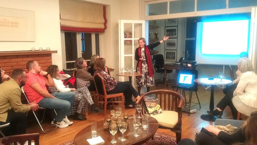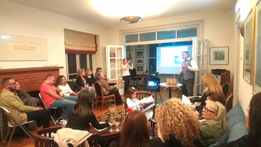 Μετά τις ενδιαφέρουσες παρουσιάσεις των συναποφοίτων μας, απολαύσαμε  κρασί και εδέσματα στο φιλόξενο σαλόνι του Morley House.